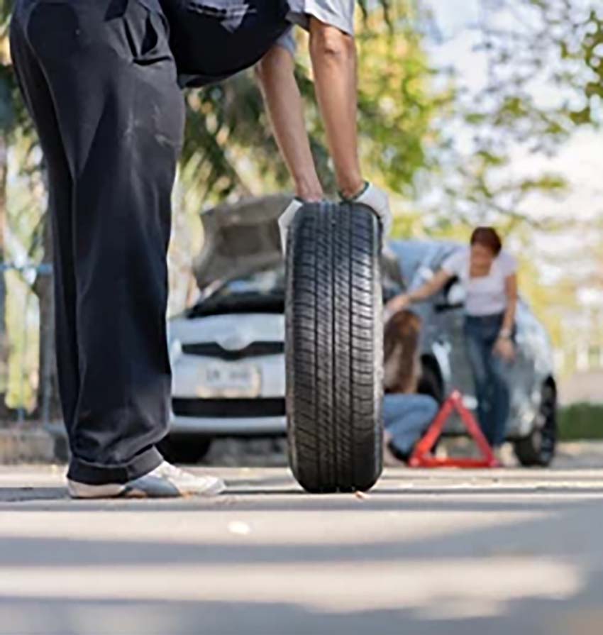 When you catch a flat and have spare tire but no tools for installation, we can come put it on for you!